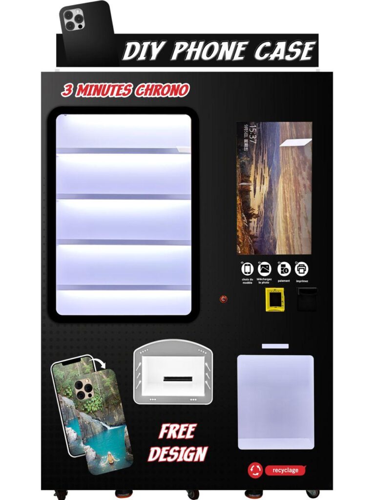 Une borne totalement automatisée d’impression de coques de téléphone en libre-service qui augmente le passage, renforce l’engagement des visiteurs et crée une nouvelle source de revenus pour votre site.